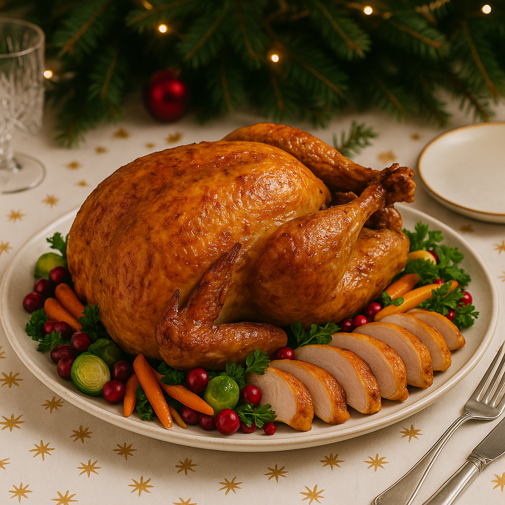 Stegt farseret kalkun (klar til servering): Opvarm i ovn ved 150°C i 40–50 minutter. Dæk evt. med folie for at bevare saftigheden