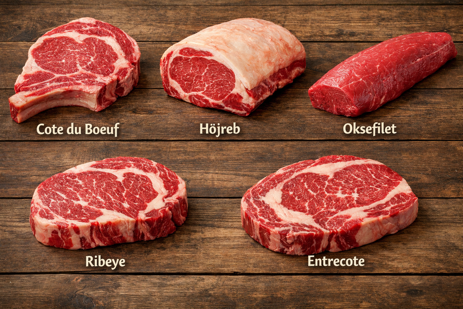 • Oksefilet med eller uden fedtkant.