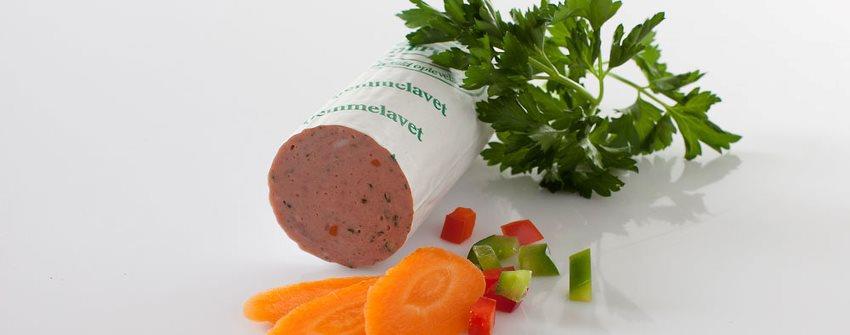 Finthakket kødpølse, tilsat porrer og gulerødder